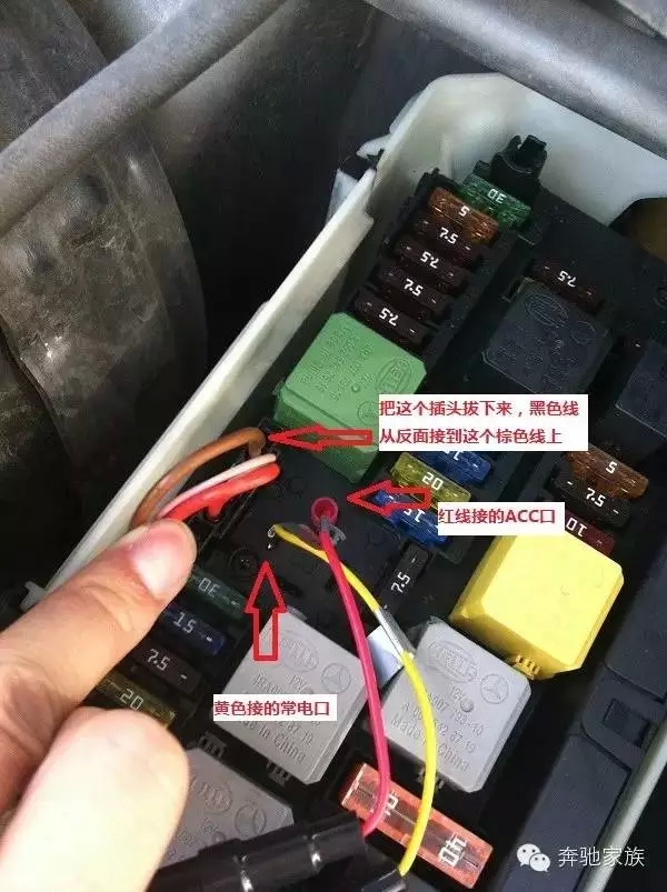 黃色的線記得要接常電(熄火拔鑰匙還會(huì)供電),紅色的線要接ACC,黑色的是打鐵線。